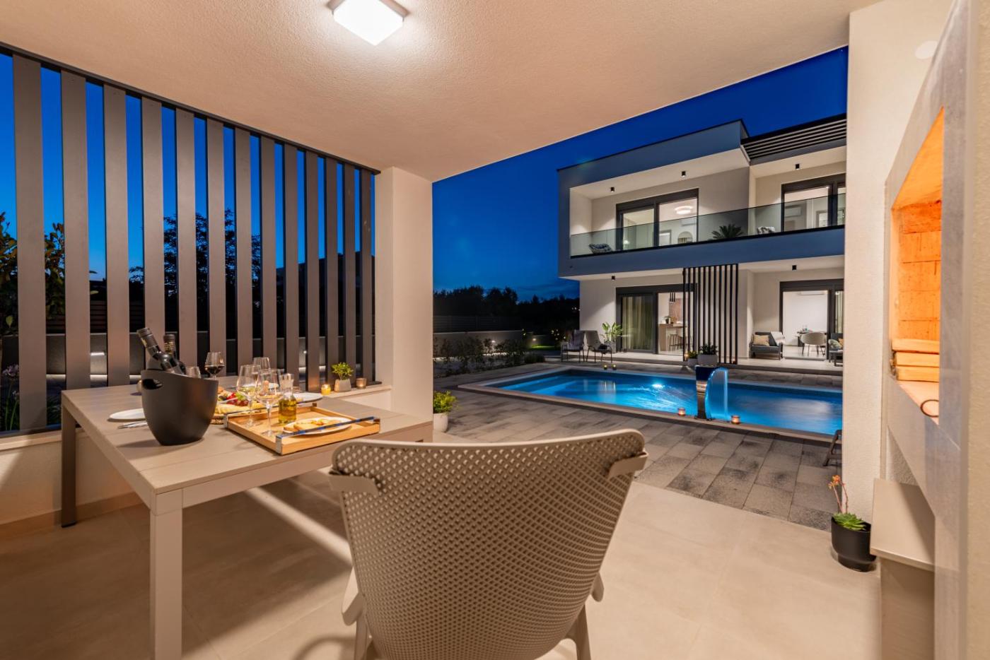Featuring air-conditioned accommodation with a private pool, pool view and a balcony, Modern 4BR Private Villa - Pool, Jacuzzi, Gaming Room is located in Bibinje. This property offers access to a terrace, table tennis, free private parking and free WiFi. The villa has an outdoor fireplace and a hot tub.