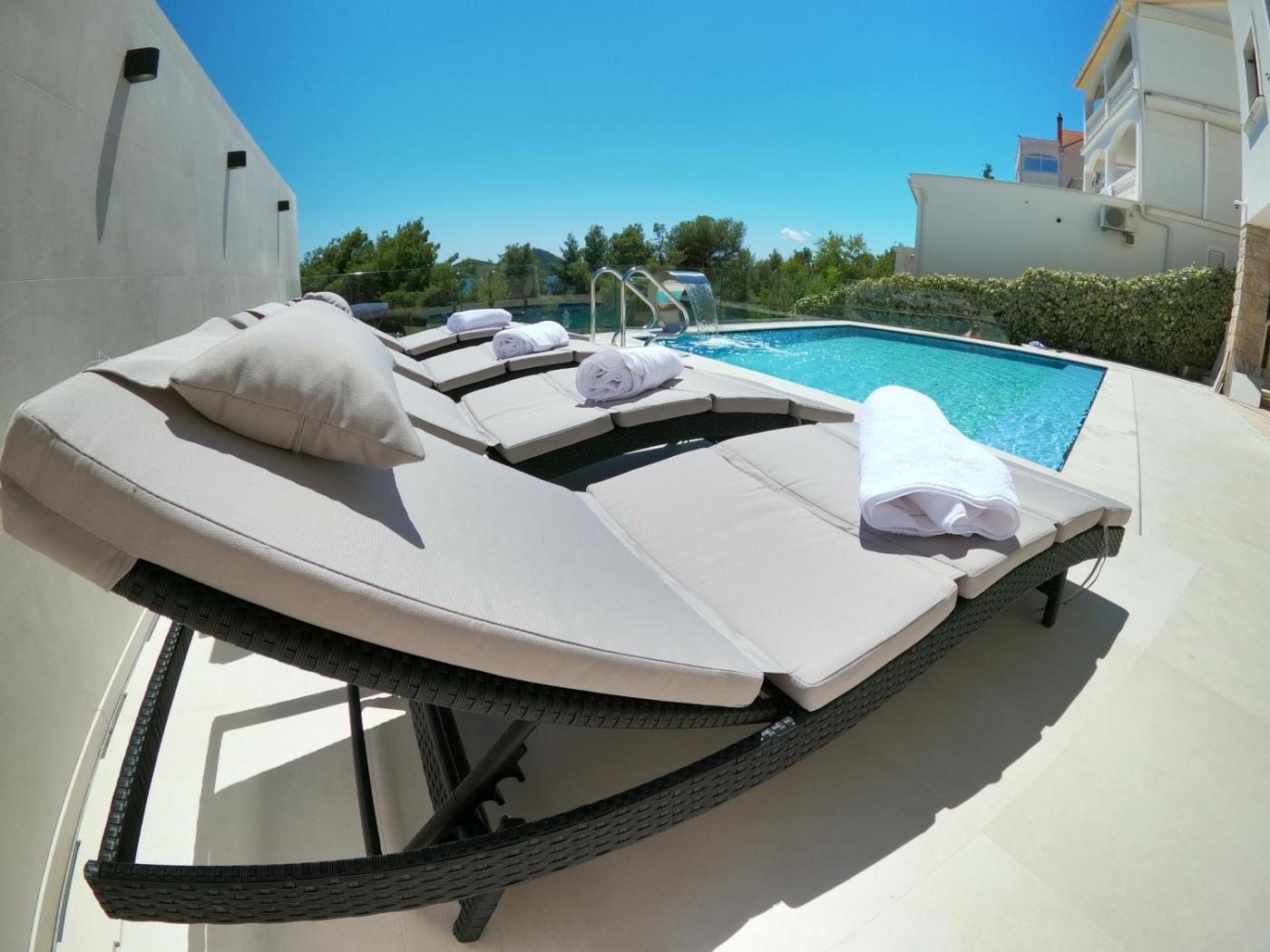 Villa with Sea View. This villa has a balcony, private entrance and a pool with counter-current swimming system, heated water and massage jets.