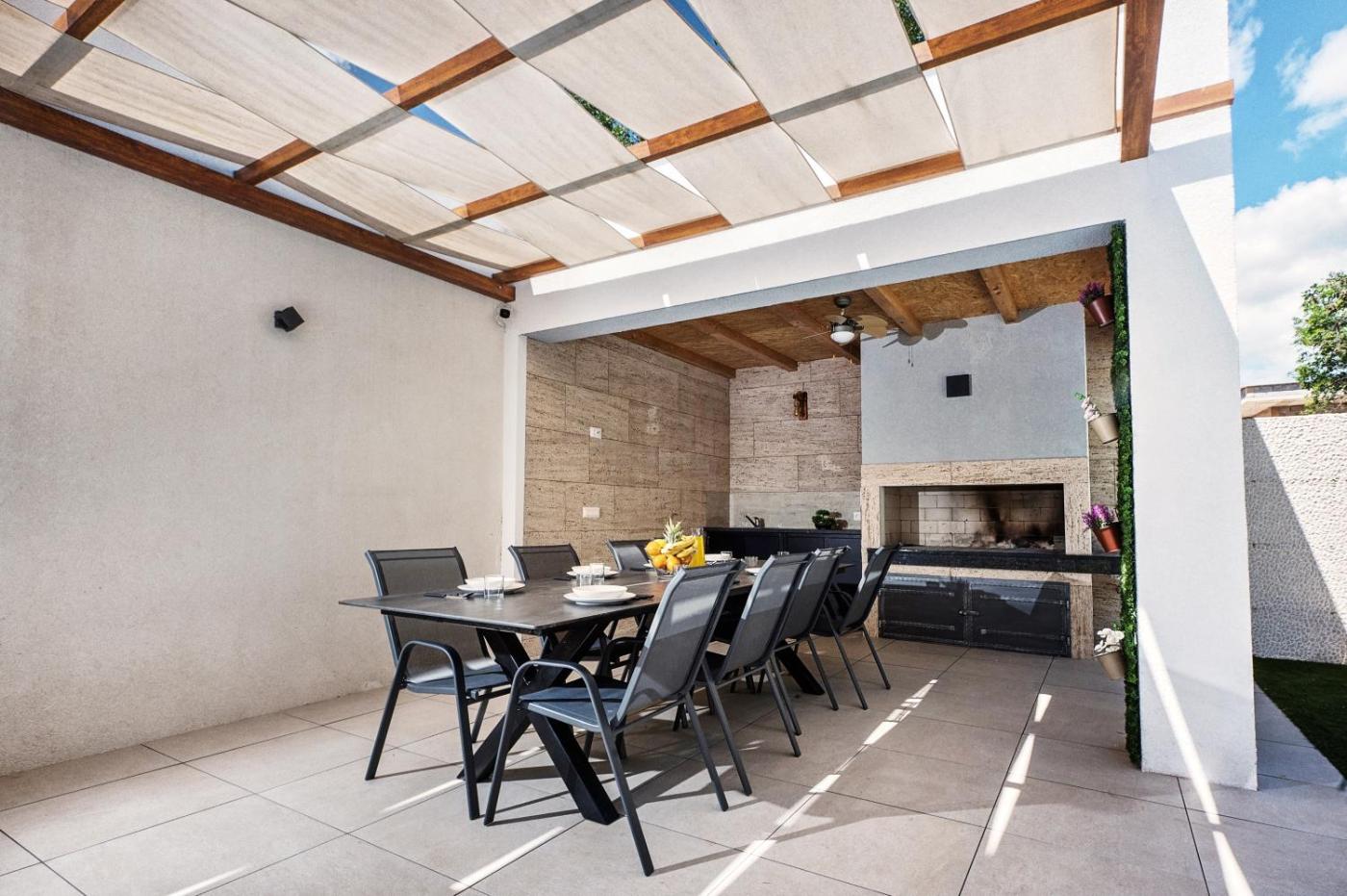 Villa with Private Pool. The private pool and fireplace are the standout features of this villa. Boasting a private entrance, this air-conditioned villa comes with 1 living room, 3 separate bedrooms and 1 bathroom with a shower and a hairdryer. Guests will find a stovetop, a refrigerator, a dishwasher and kitchenware in the well-fitted kitchen. The villa also includes a barbecue. Featuring a terrace with garden views, this villa also features a washing machine and a flat-screen TV with streaming services. The unit has 3 beds.