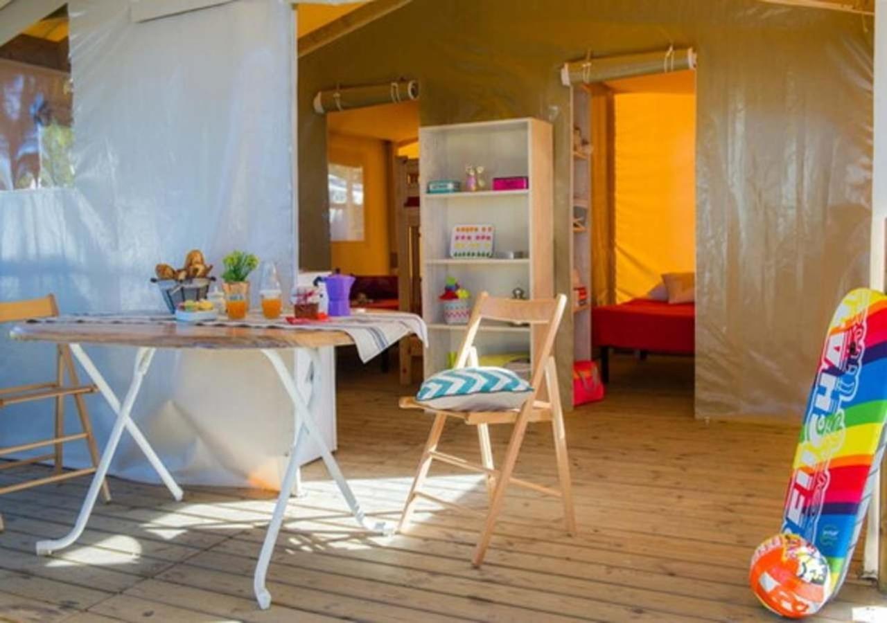 Tent. Guests will find a refrigerator and kitchenware in the kitchen. The tent also includes a barbecue. The tent has outdoor furniture. The unit has 2 beds.