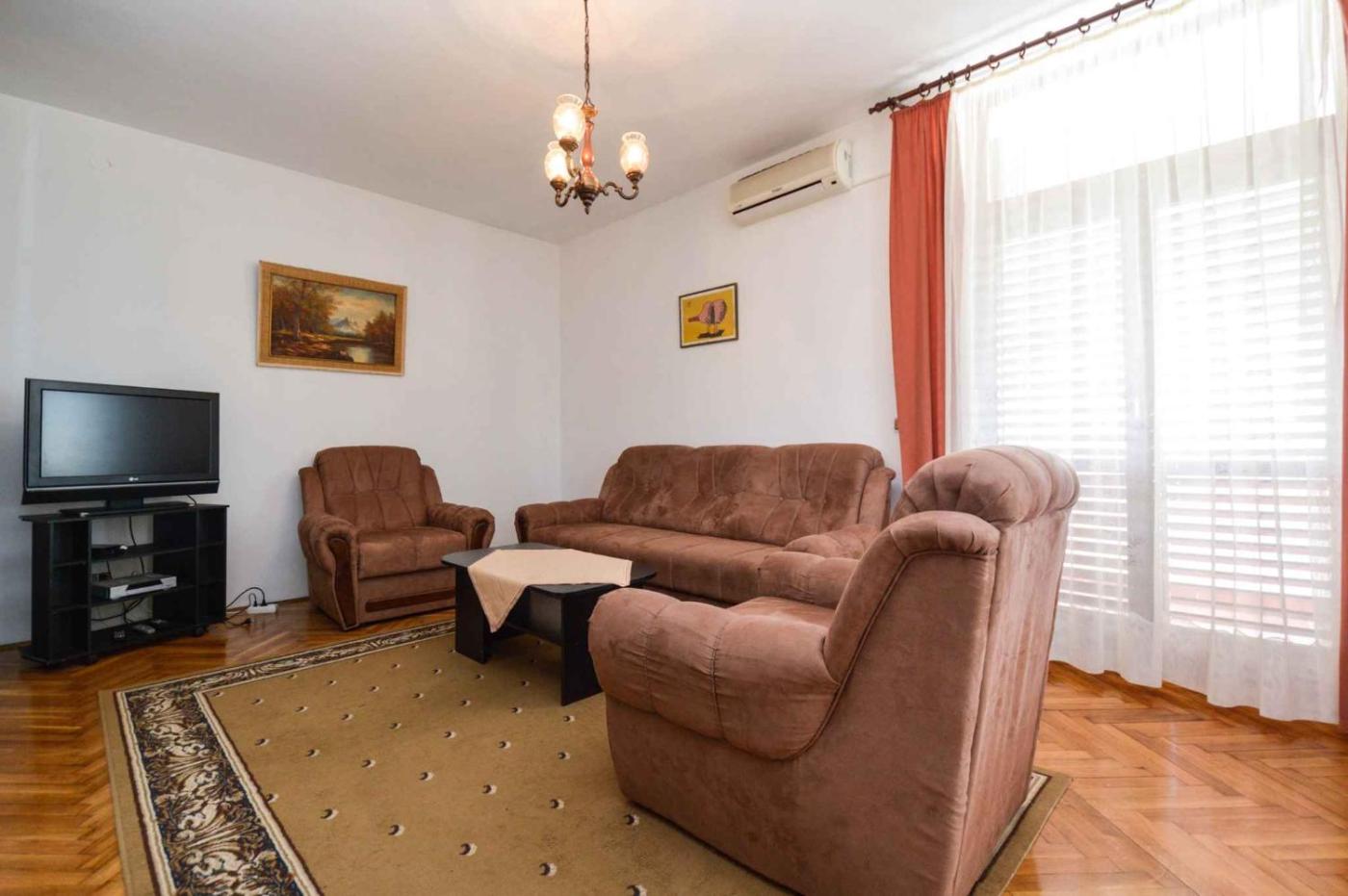 Apartment. This spacious apartment comes with 1 living room, 3 separate bedrooms and 2 bathrooms with a bath and a shower. Guests will find a stovetop and a refrigerator in the kitchenette. The apartment also includes a barbecue. This air-conditioned apartment includes a dining area, a TV with satellite channels a tea and coffee maker and a balcony. The unit has 4 beds.