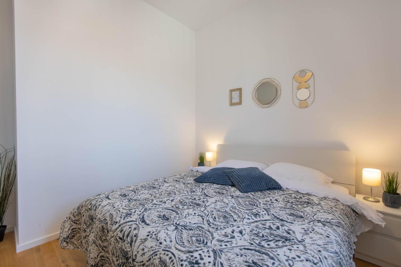 Two-Bedroom Apartment. This spacious apartment comes with 2 bedrooms, a kitchen and 1 bathroom with a hairdryer. In the kitchen, guests will find a refrigerator, a dishwasher, an oven and a microwave. Boasting a balcony, this apartment also features air conditioning, a washing machine and a flat-screen TV. The unit has 3 beds.