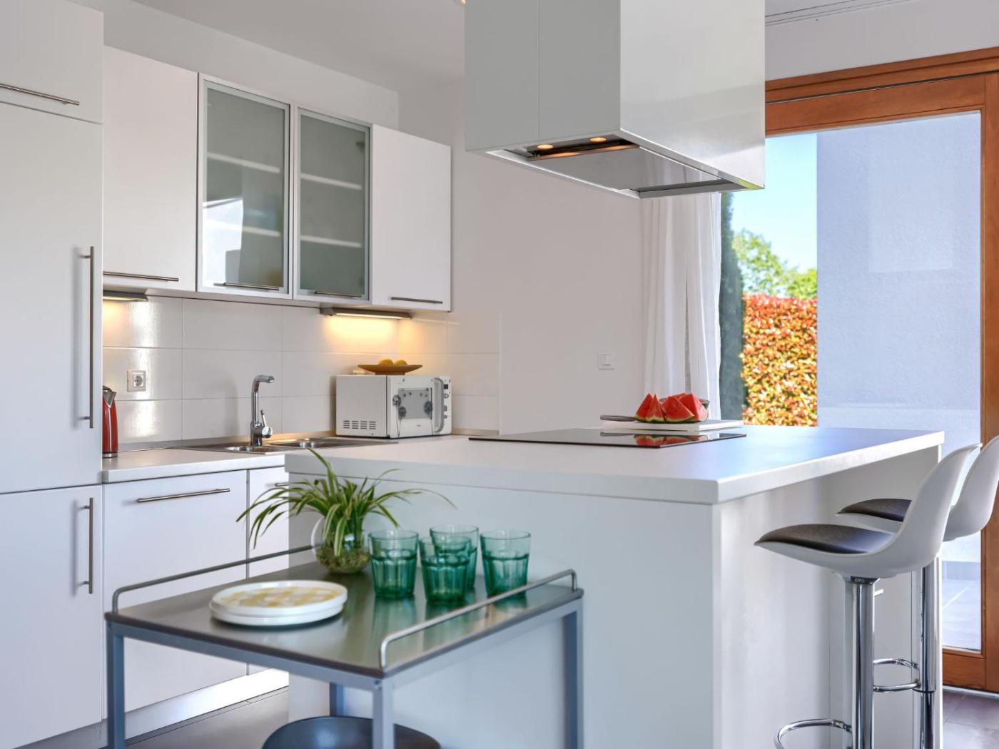 Villa. This villa provides a private pool. The air-conditioned villa features 3 bedrooms and 2 bathrooms with a bath and a bidet. Meals can be prepared in the well-fitted kitchen, which comes with a stovetop, a refrigerator, a dishwasher and kitchenware. This villa comprises a dining area, a TV with satellite channels a safe deposit box and a terrace. The unit offers 3 beds.